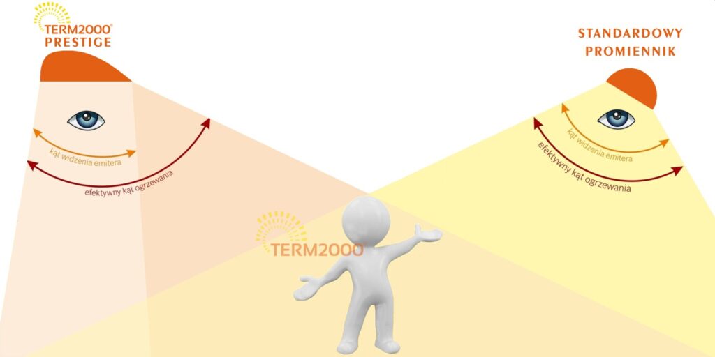 Najnowszy promiennik podczerwieni PRESTIGE to kolejna innowacja wprowadzona przez naszą firmę, nowość, która zmienia oblicze rynku promienników krótkofalowych. W produkcie TERM2000 Prestige emiter podczerwieni ogrzewa osoby nie narażając ich na uporczywe działanie światła. Mimo, że ilość ciepła pozostaje na niezmienionym poziomie, to wyjątkowy i innowacyjny układ luster sprawia, że odbiorca ogrzewany jest równomiernym, niewidocznym strumieniem ciepła. Promiennik wyposażony jest również w unikalny system chłodzenia emitera, który skutecznie chroni złotą powłokę żarnika HeLeN i znacznie zwiększa jego żywotność.