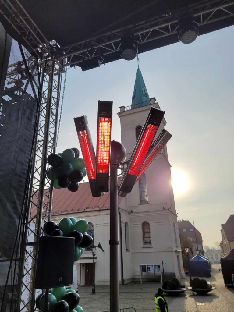 Stosując promienniki, zyskujesz pewność, że goście nie będą odczuwać chłodnych temperatur. Promienniki ciepła są w stanie działać nawet w ekstremalnie niskich temperaturach, sięgających aż – 20 stopni Celsjusza. Istotne jest dopasowanie ich mocy do wymagań wydarzenia.